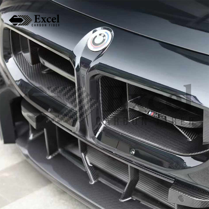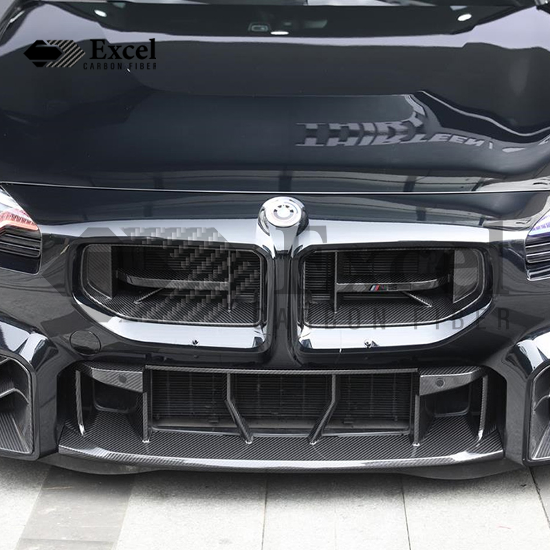 Introducing the CS style Carbon Fibre Front Grilles, exclusively for the 2023 BMW G87 M2. This groundbreaking bodykit is meticulously crafted from premium 2x2 twill pre-preg carbon fibre, delivering an unrivaled combination of style, aerodynamics, and performance. Elevate your G87 M2's aesthetics while enhancing its driving dynamics with Excelcarbon bodykit.