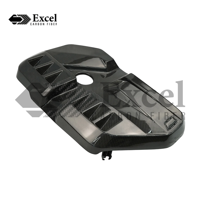 Excelcarbon introduces the Dry Carbon Fiber Engine Cover for the G87 M2, a superior enhancement that distinguishes the vehicle from others. This engine cover is meticulously crafted from premium dry carbon fiber, boosting both the engine’s performance and aesthetic appeal. Dry carbon is considered the highest standard in carbon fiber materials, and engine cover is a prime example of this excellence. It is produced using the “pre-preg” method, where carbon materials are impregnated, molded, and then cured in a sealed vacuum (autoclave), resulting in a lightweight, durable carbon structure with minimal waste and fewer imperfections. The autoclave vacuuming process ensures precise fabrication, offering a flawless finish. Featuring a 3K twill weave pre-preg carbon fiber, the cover displays a stunning, consistent pattern characteristic of high-quality dry carbon. This cover not only upgrades the look of the engine bay but also sets it apart from standard OEM parts, making it an ideal choice for those who value both style and performance in their G87 M2.